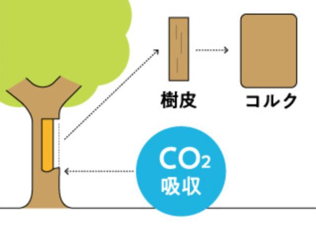 コルクはコルク樫の樹皮の部分から作られるため、木を切り倒すことなく収穫できます。樹皮の再生時に多くの二酸化炭素を吸収するサステナブルな素材です。