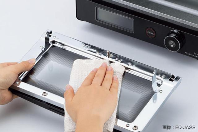 目が細かい焼き網なので、おもちがたれずに上手に焼けます。焼き網、くず受皿は取り外して洗えます。