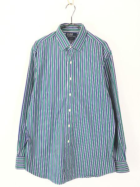 古着 Polo Ralph Lauren 「CURHAM CLASSIC FIT」 カラフル マルチ ストライプ シャツ L 古着
