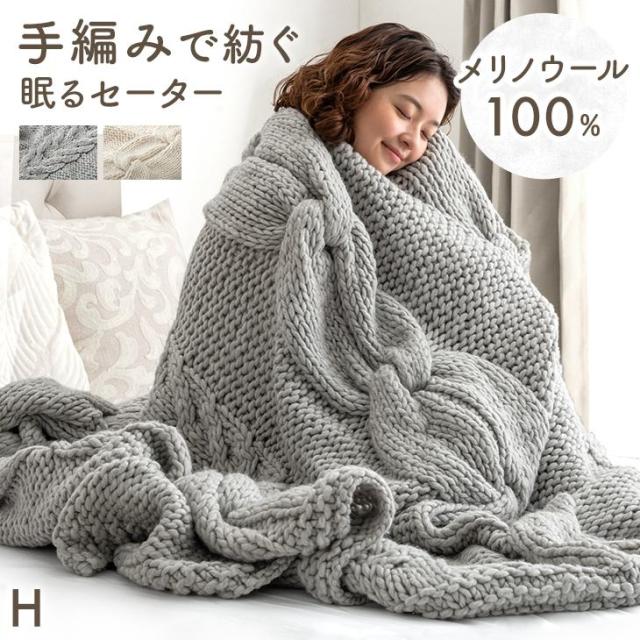 【在庫一掃プライス】 眠るセーター 毛布 ハーフ メリノウール100% ニット THE WINTER BLANKET ブランケット 冬用 手編み ひざ掛け 膝掛け ウール 100 掛け布団 掛布団 ケット ソファーカバー マルチカバー あったか 暖かい 厚手 大判 ギフト
