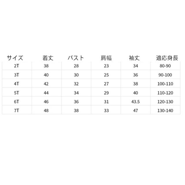 | サイズ | 2T 3T 4T 5T 6T 7T |
