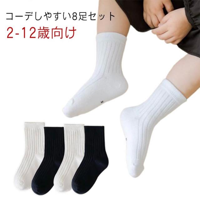 スクールソックス 8足セット 子供 靴下 クルー丈 オールシーズン用 白 黒 パンダソックス キッズ 男の子 女の子 男子 女子 ジュニア 制服 ソックス リブ くつした くつ下 幼児 小学生 イベント 14 15 16 17 18 19 20 21 22 23 24 25 26cm 送料無料