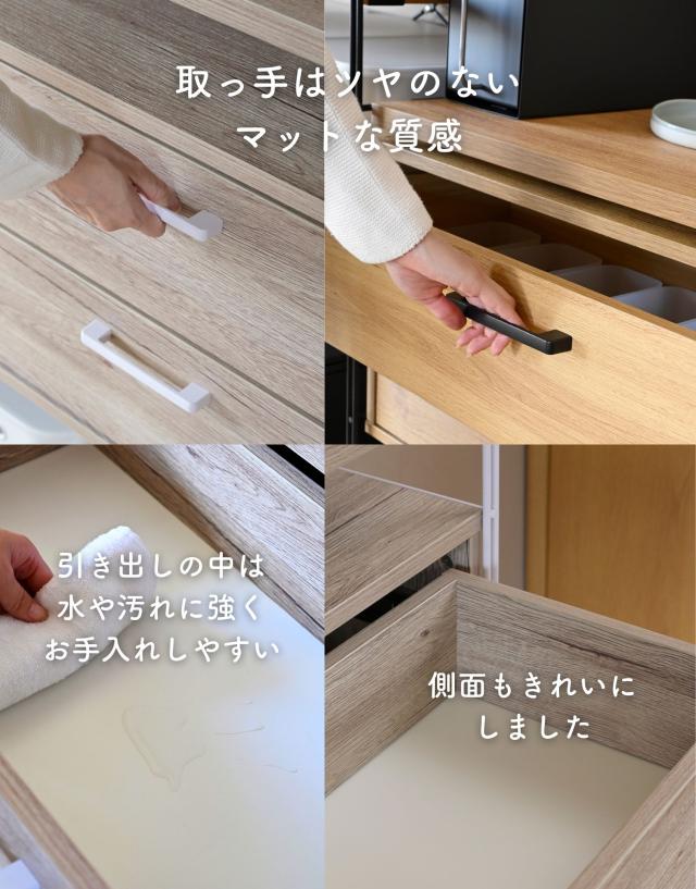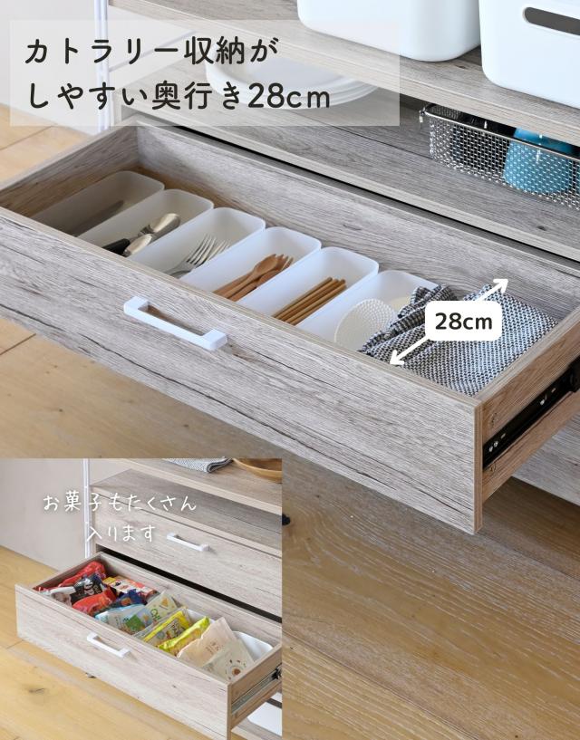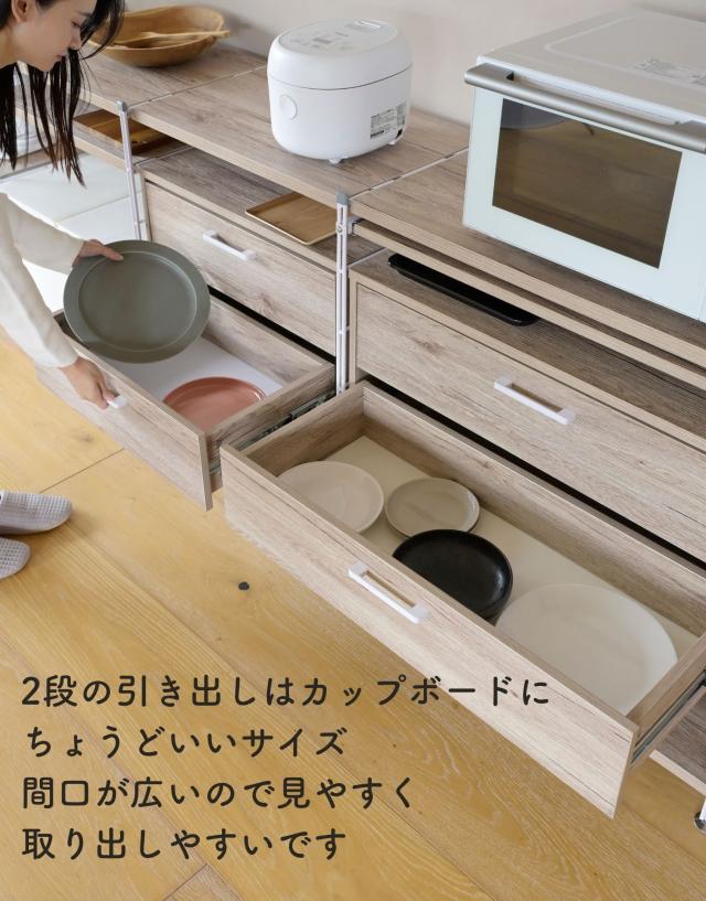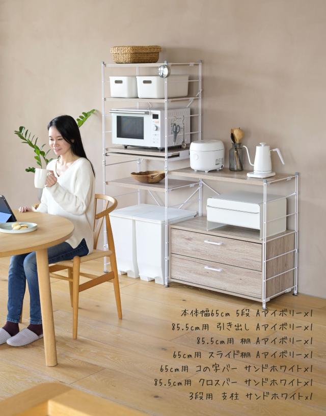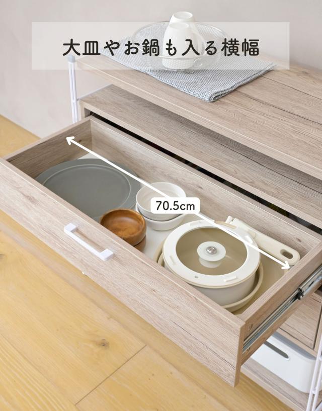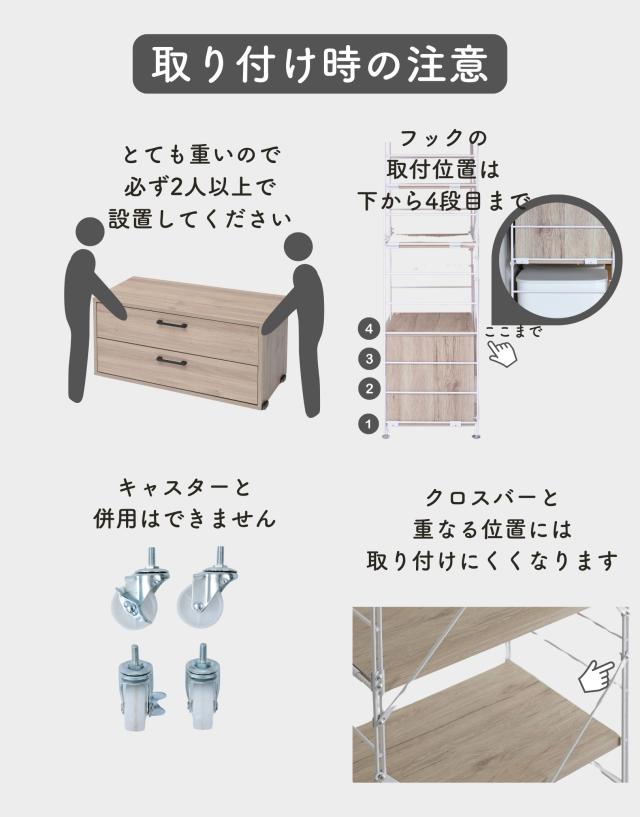 | 商品説明 | ●※本ページはオプションパーツ販売ページです。本体は別売りです。 【取り付け時の注意事項】 ※重い商品ですので、必ず2人以上で設置してください。 ※本体フレームの桟、下から4段目までの間にフックを引っかけてください。 ※クロスバーと重なる位置には取り付け付けづらい場合があります。 ※キャスターと併用はできません。 ※引き出しを2段同時に引き出さないでください。 ●ウッドシェルフに後付けできる専用引き出し ●本体幅85.5cm用 ●レール式でスムーズな開閉 ●奥のものまで見やすいフルオープン式 ●木の質感があってお手入れもかんたん ●カトラリー、食品、お皿、お鍋などが収納しやすいサイズ ●リビングや寝室で衣類や小物収納にも使える ●内寸 幅: 70.5、奥行き: 28、深さ:11cm ●スライド幅:取っ手まで 33cm ●耐荷重: 天板10kg、引き出し1段当たり5kg ※ラック本体の全体耐荷重は商品サイズにより異なるため、ラック本体よりご確認お願いします。 |