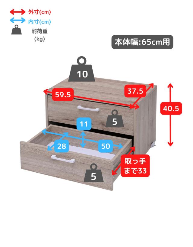 | 商品説明 | ●※本ページはオプションパーツ販売ページです。本体は別売りです。 【取り付け時の注意事項】 ※重い商品ですので、必ず2人以上で設置してください。 ※本体フレームの桟、下から4段目までの間にフックを引っかけてください。 ※クロスバーと重なる位置には取り付け付けづらい場合があります。 ※キャスターと併用はできません。 ※引き出しを2段同時に引き出さないでください。 ●ウッドシェルフに後付けできる専用引き出し ●本体幅65cm用 ●レール式でスムーズな開閉 ●奥のものまで見やすいフルオープン式 ●木の質感があってお手入れもかんたん ●カトラリー、食品、お皿などが収納しやすいサイズ ●リビングや寝室で衣類や小物収納にも使える ●内寸 幅: 50、奥行き: 28、深さ:11cm ●スライド幅:取っ手まで 33cm ●耐荷重: 天板10kg、引き出し1段当たり5kg ●※ラック本体の全体耐荷重は商品サイズにより異なるため、ラック本体よりご確認お願いします。 |