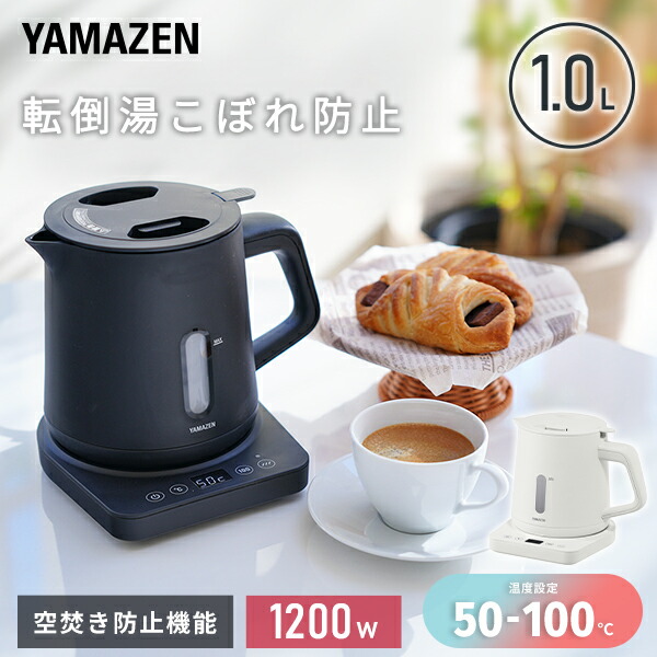 | 山善 YAMAZEN 電気ケトル 1.0L 湯こぼれ防止 1200W 温度設定 50-100度 保温機能 空焚き防止 YKU-SC1210J |