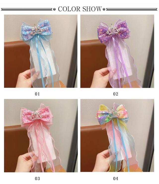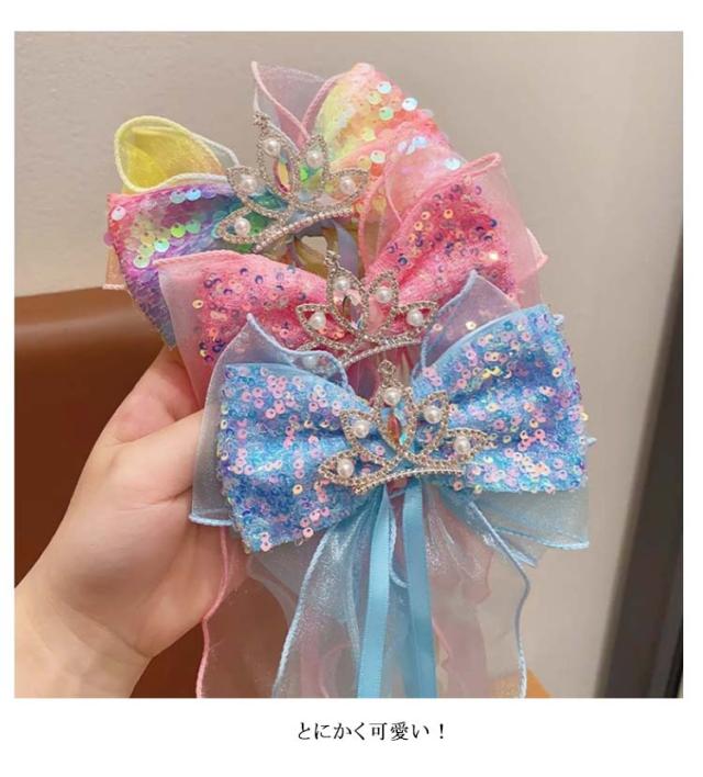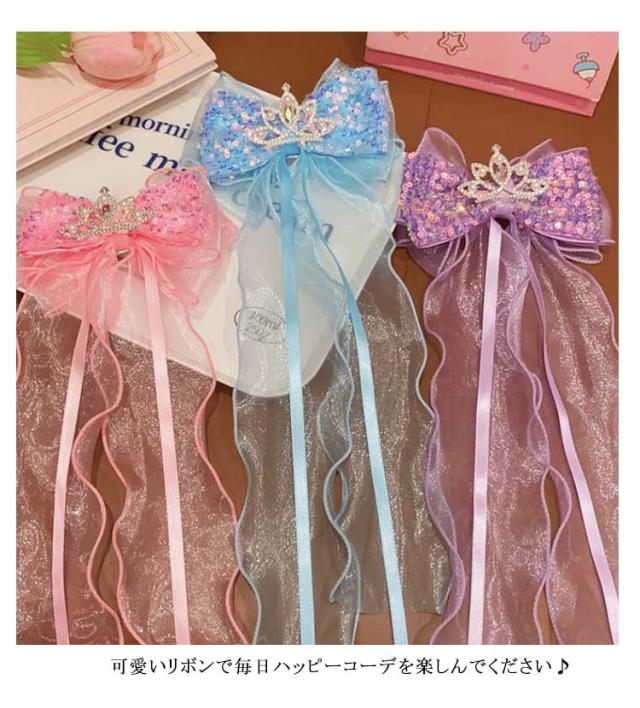 リボン ヘアピン ヘアアクセサリー ロングリボン 子供 ガールズ 女の子 キッズ オーガンジー シア— リボン 発表会 入園式 入学式 結婚式 卒業式 大人っぽい 大人可愛い ハンドメイド スパンコール キラキラ おしゃれ ブルー 青 ピンク 紫 クリーム ネイビ カラフル 送料無料