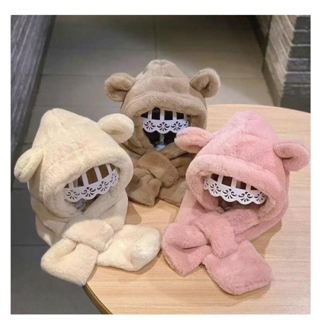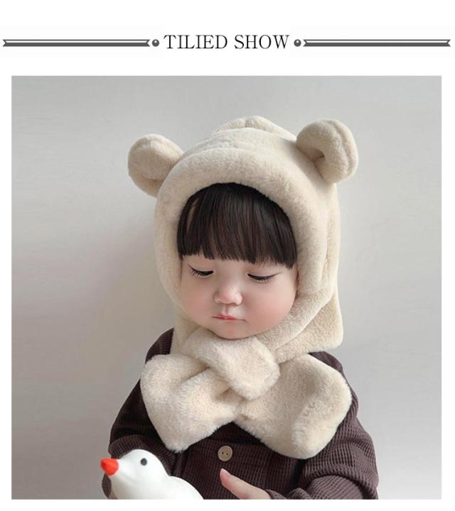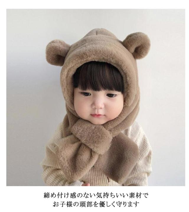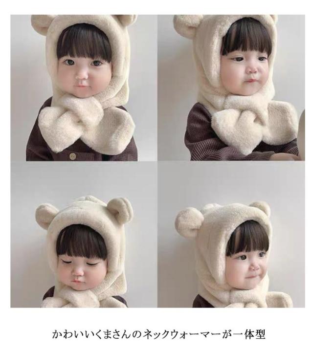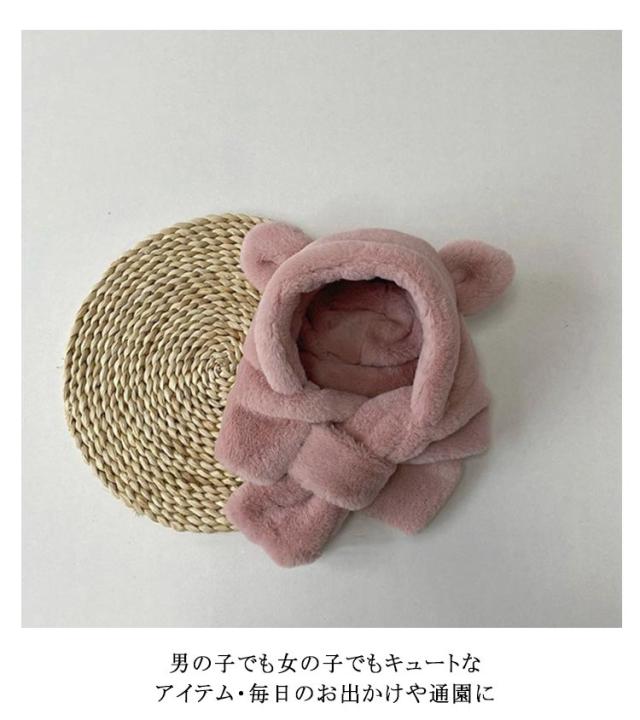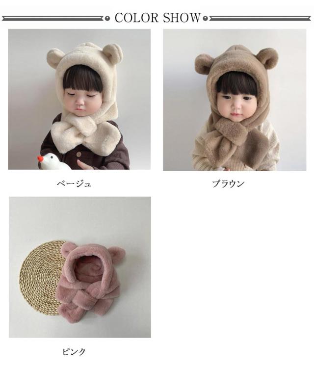 送料無料 キッズ フードマフラー 子ども ベビー 子供 キッズ 帽子 ネックウォーマー フード付きマフラー くま ニット帽 暖かい 防寒 可愛い もこもこ 耳付き キャップ 女の子 男の子 防寒 通園 通学