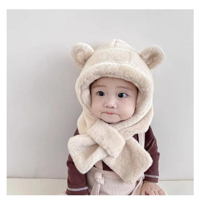 | お洋服に合わせやすく一体型のベビー帽子 かわいいくまさんのネックウォーマーが一体型 締め付け感のない気持ちいい素材でお子様の頭部を優しく守ります 男の子でも女の子でもキュートなアイテム・毎日のお出かけや通園に | |