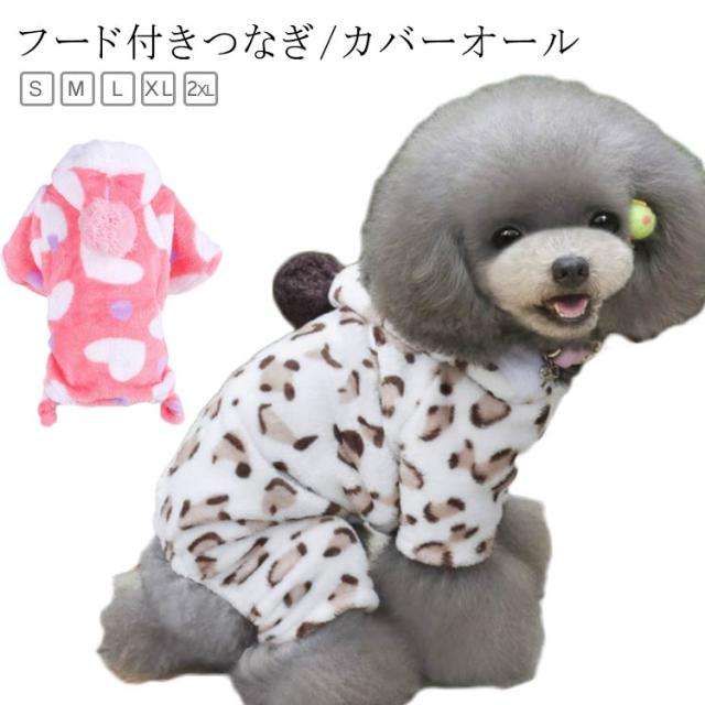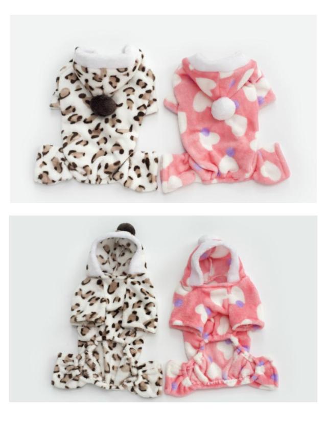 犬服 ドッグウェア つなぎ カバーオール 秋冬 無地 ピンク ヒョウ柄 フード付きつなぎ カバーオール つなぎ カバーオール スター 部屋着 パジャマ オールインワン ロンパース フード付き 抜け毛防止 ペット服 冬服 送料無料