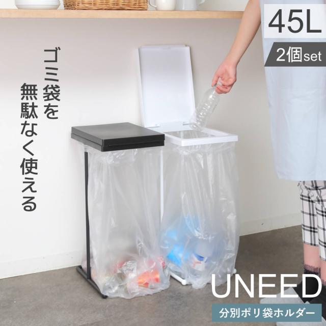 ゴミ箱 45L 同色2個セット ユニード ゴミ袋ホルダー 小窓なし ( ごみ箱 45リットル ポリ袋ホルダー 分別 スリム ふた付き 袋ホルダー 大容量 棚下 収納 省スペース 清潔 ゴミ袋 ホルダー 中身が見える )