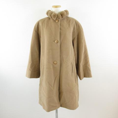 【中古】Carat ウールコート ロング 長袖 フォックスファー ベージュ 9AR *T779 レディース