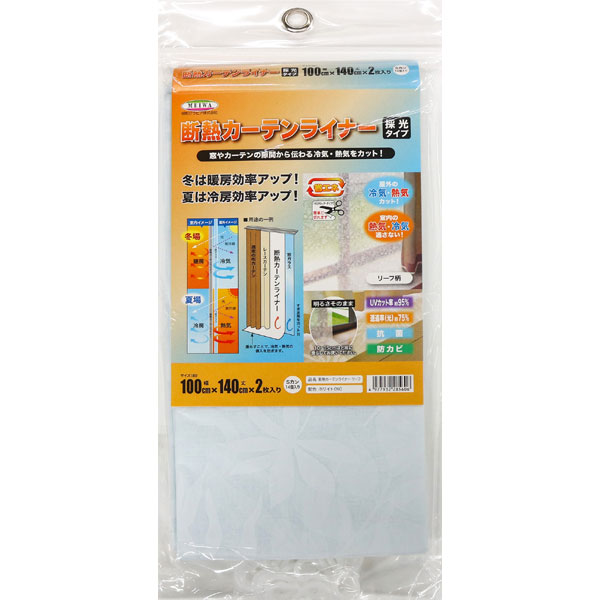 【メール便送料無料】明和グラビア 断熱カーテンライナー 採光タイプ リーフ柄 リーブズ ホワイト 幅100cm×丈140cm 2枚入 Sカン14個入