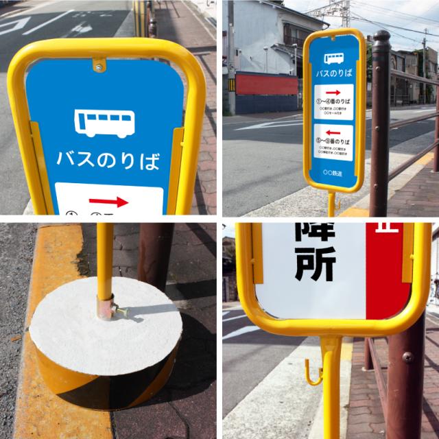 【デザイン自由】スチール置き看板 バスのりば看板 / 屋外 両面 バス停看板 バス停スタンド バス乗り場 バス乗降所 o-17-bus