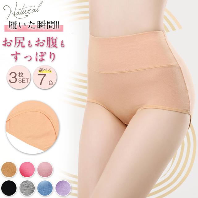 3枚セット ショーツ 綿 レディース ハイウエスト 下着 おなかすっぽり 大きいサイズ 深履き まとめ買い 生理用 かわいい ガードル 深め