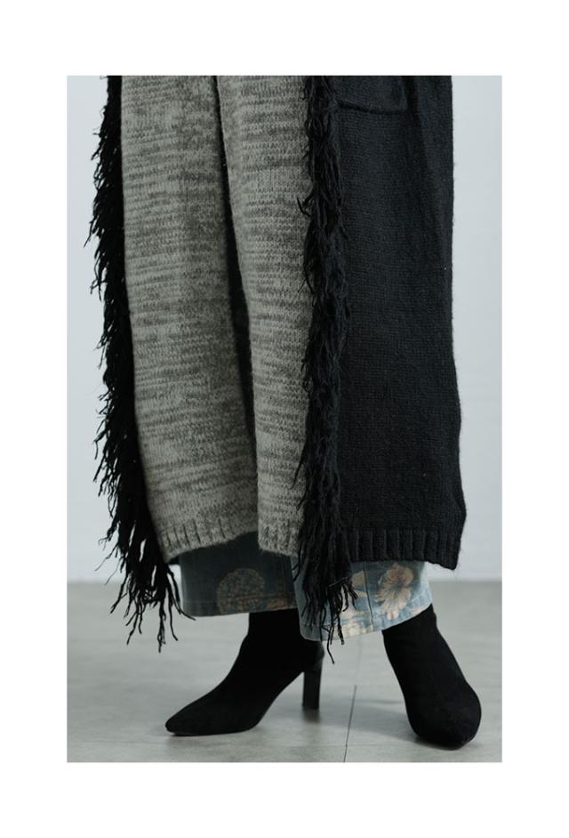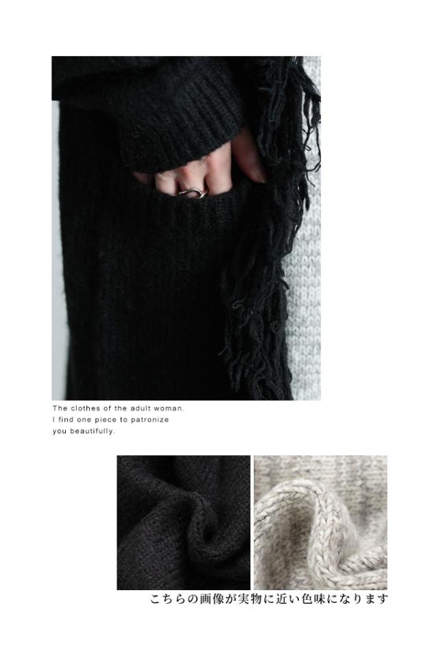 特徴: 配色 フリンジ フード ニット ボタン ポケット メランジ