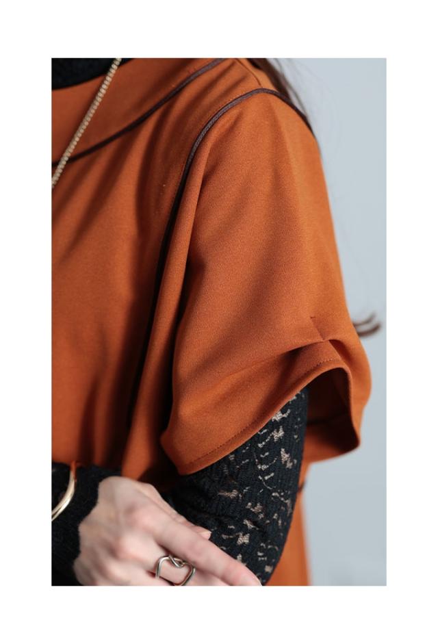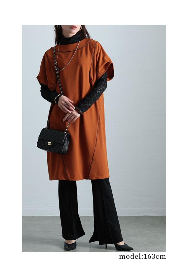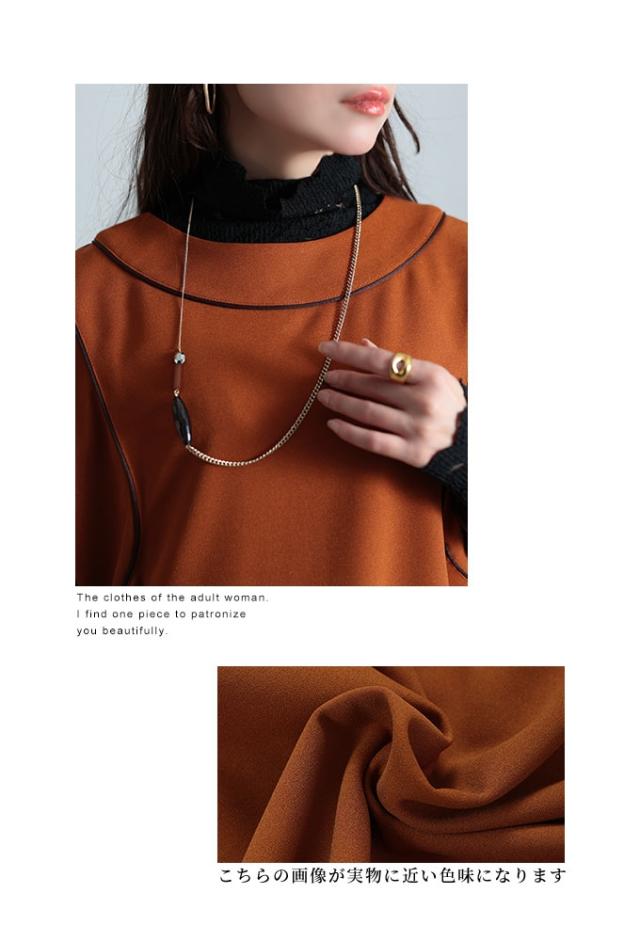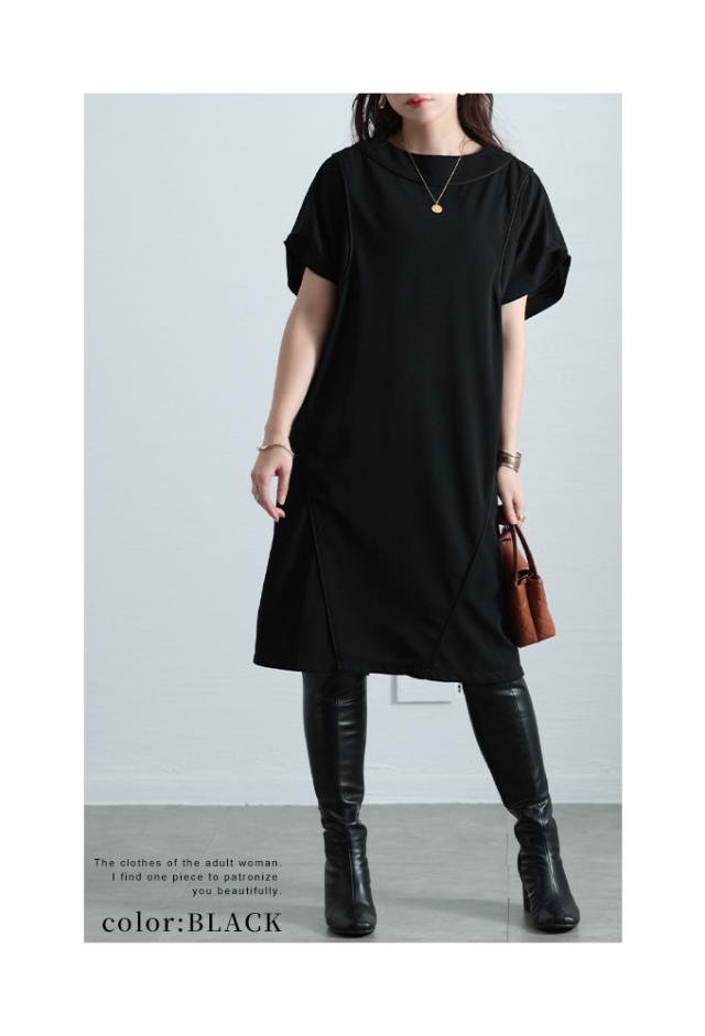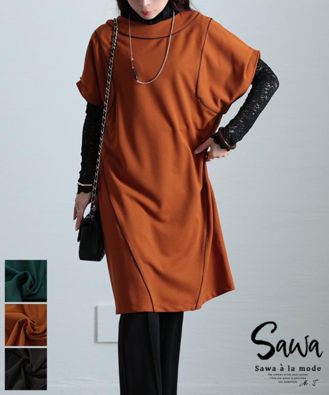 春新作 パイピングがつくる立体感ドルマンワンピース レディース ファッション ワンピース パイピング ライン ドルマン 半袖 ミドル 無地 重ね着 春 秋 冬 30代 40代 50代 60代 サワアラモード sawaalamode otona 大人 cawaii 可愛い 洋服 かわいい服 swmy-0030