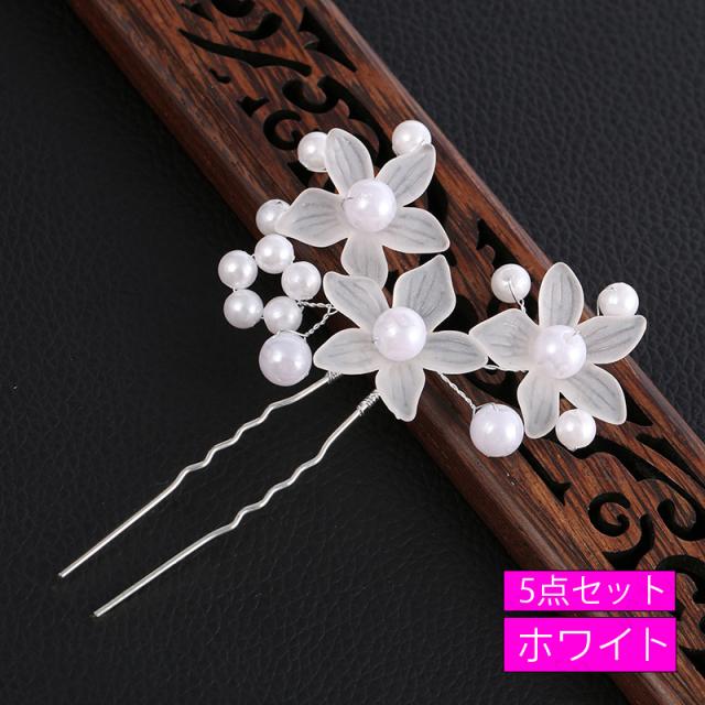 h173#Uピン パール 5点セット 当日発送 かんざし 花 フラワー ホワイト 髪飾り ヘアアクセサリー 結婚式 ヘアピン 和装 シルバー 着物 おしゃれ 簪 大人可愛い