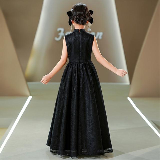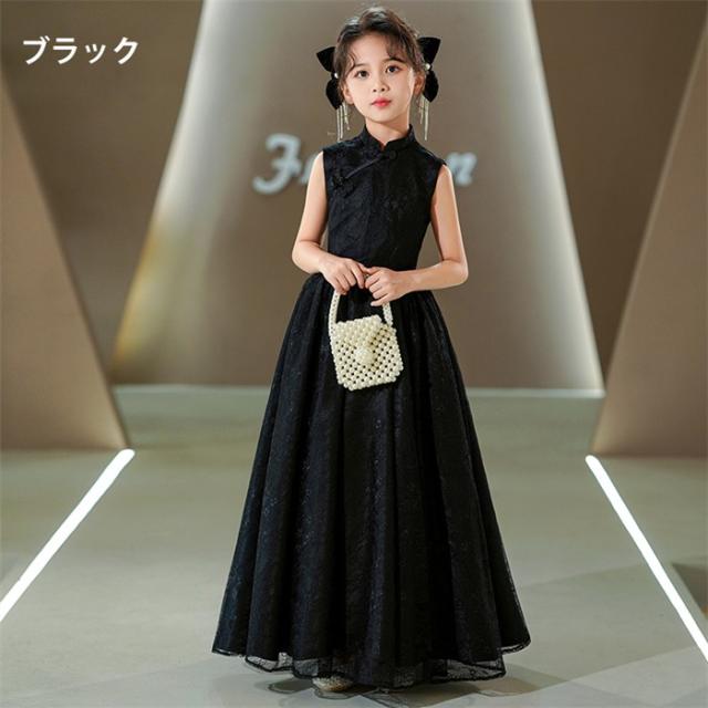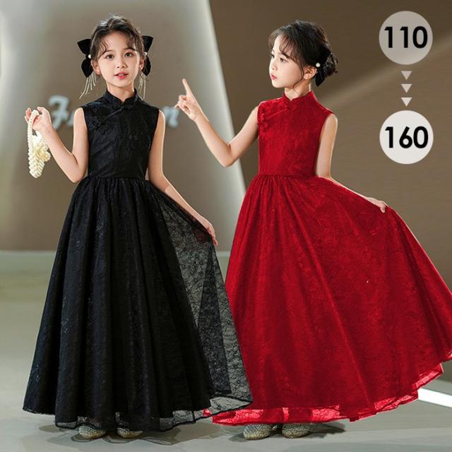 ピアノ発表会 キッズドレス 子供 女の子 ブラック ワインレッド 発表会ドレス ノースリーブ 子ども ワンピース お祝い日 演奏会 音楽会 フォーマル 誕生日 撮影 パーティー ジュニア キッズ 黒 赤 ロングドレス ロング 可愛い 七五三 結婚式 卒業式 入学式