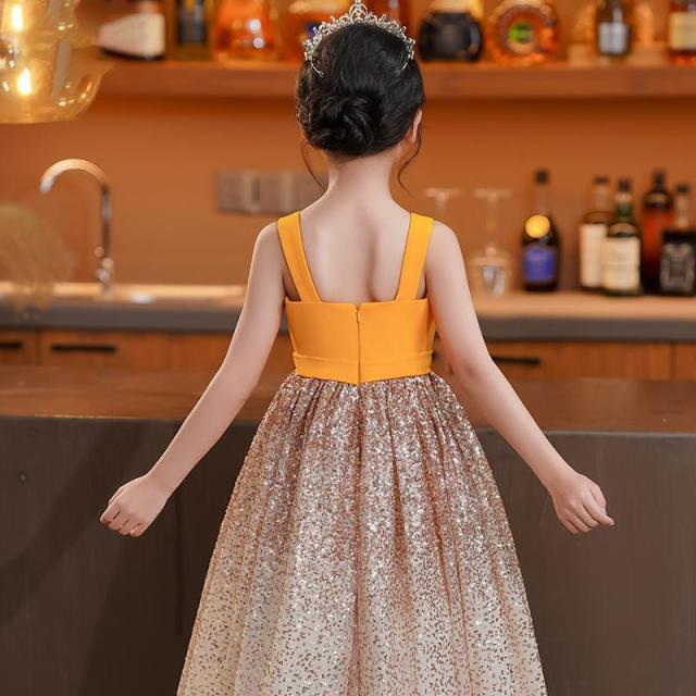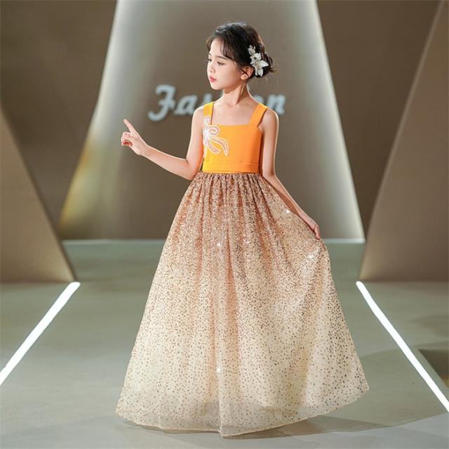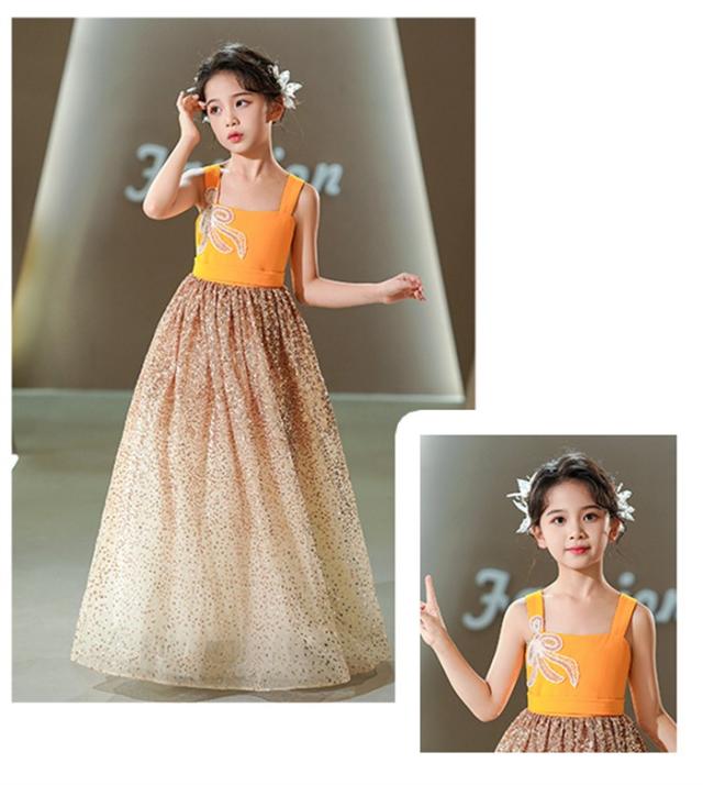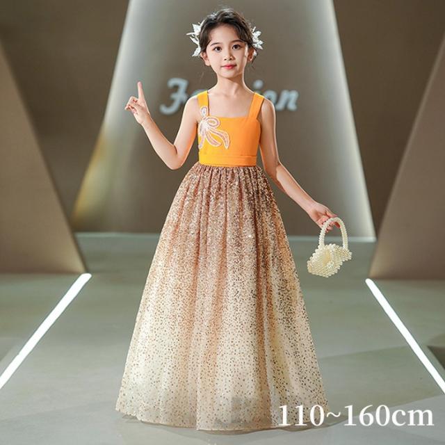 ピアノ発表会 ドレス 子供 女の子 イエロー 発表会ドレス ノースリーブ 子ども ワンピース お祝い日 演奏会 音楽会 フォーマル 誕生日 撮影 パーティー ジュニア キッズ ロングドレス ロング 可愛い 七五三 結婚式 卒業式 入学式 ds464d7d7m5