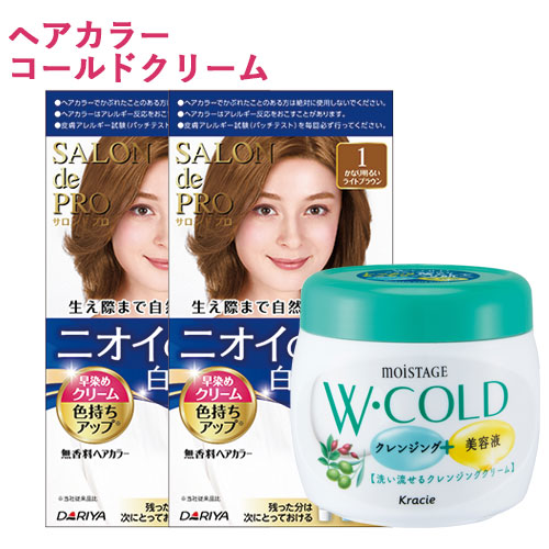 サロンドプロ 無香料ヘアカラー 早染めクリーム 白髪用 1 かなり明るいライトブラウン 2個&モイスタージュ Wコールドクリーム 270g SALON de PRO ダリヤ(DARIYA) MOISTAGE クラシエ(Kracie)【送料込】