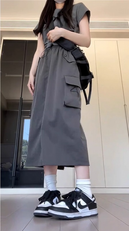 スカート カーゴスカート ミリタリー レディース 大きいサイズ ゆったり グレー カジュアル ストリート 韓国ファッション 送料無料