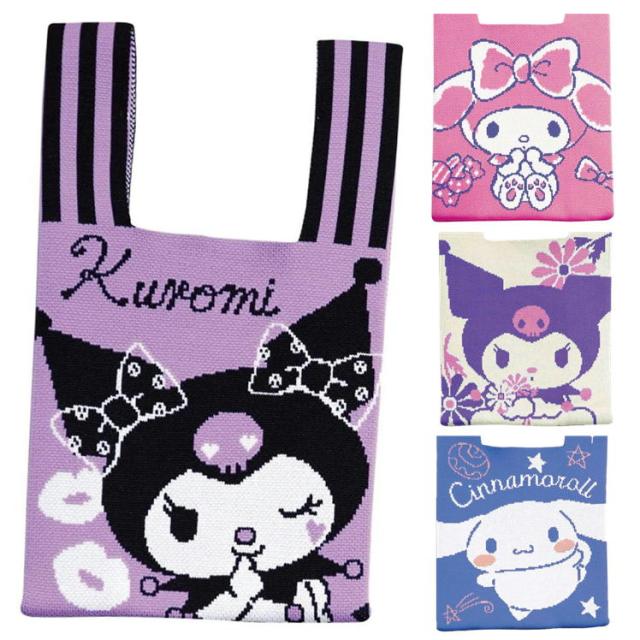 トートバッグ ニット織 サンリオキャラクターズ ニットバッグ マルシェバッグ 伸びる クロミ マイメロディ シナモロール 手提げバッグ ミニバッグ 大