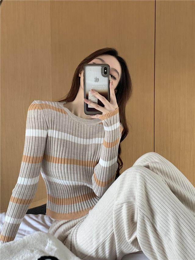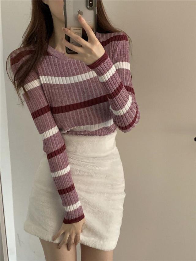 ロンティー レディース トップス 長袖 ニット シンプル カジュアル ボーダー ロンT