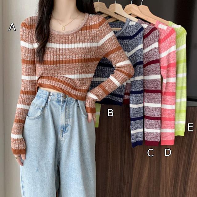 ロンティー レディース トップス 長袖 ニット シンプル カジュアル ボーダー ロンT
