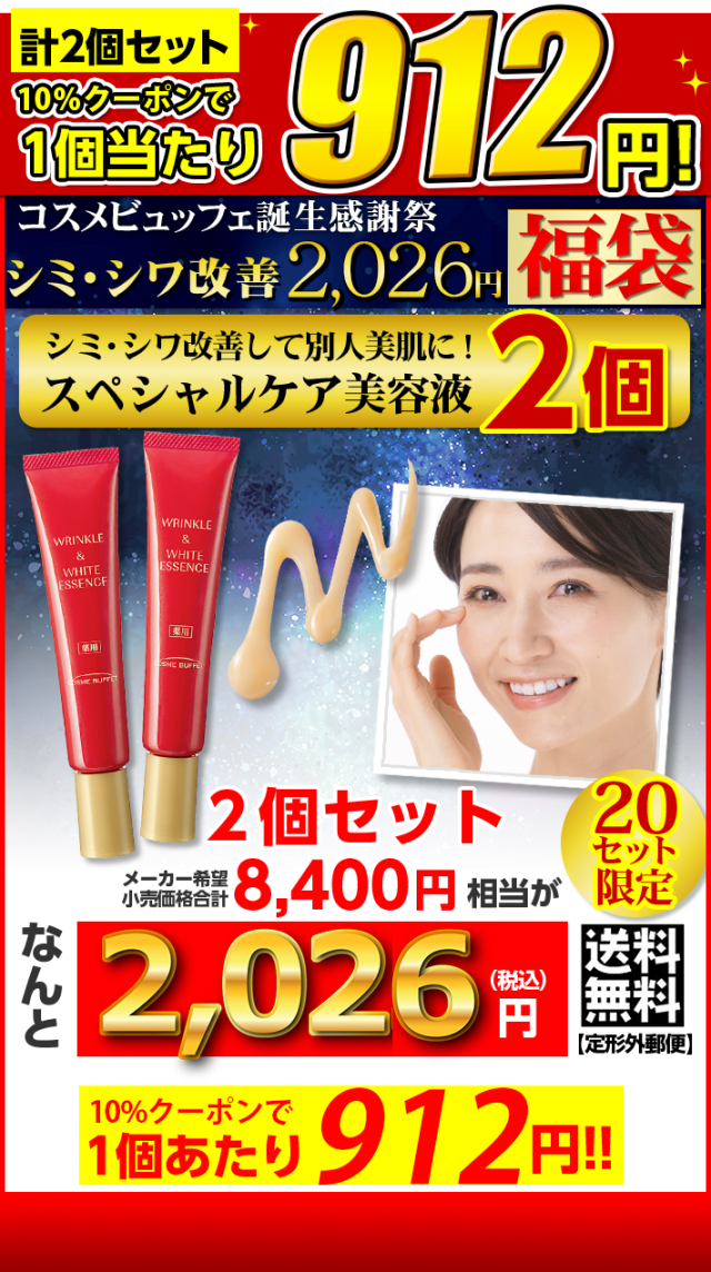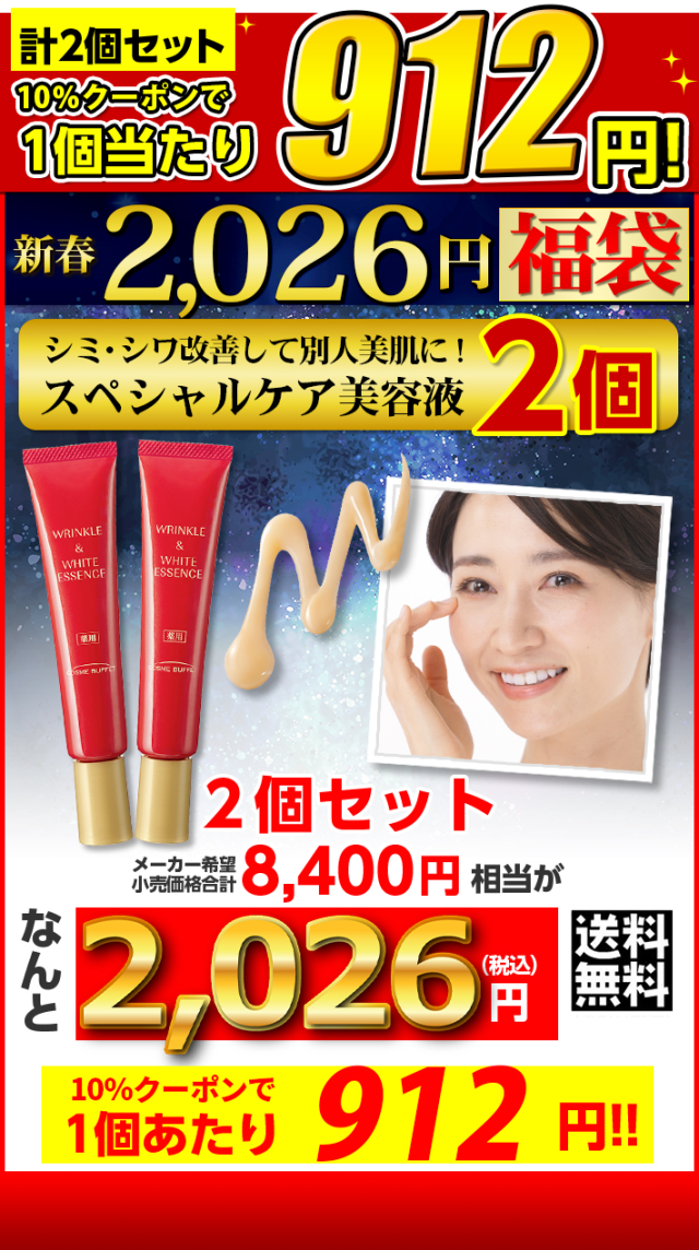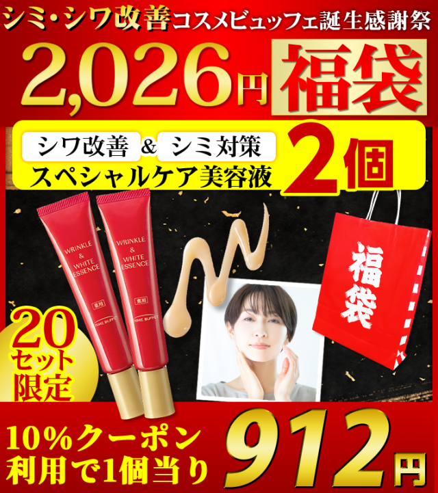 【20セット限定】 2本セット コスメビュッフェ 薬用リンクル&ホワイトエッセンス 30g 新春美肌応援 シミシワ改善 2026円福袋 WF50787 ナイアシンアミド アスタキサンチン 美容液 そばかす くすみ 美白 医薬部外品 定形外