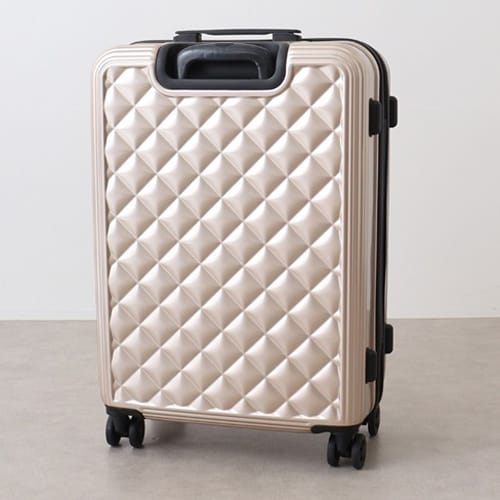 CECIL McBEE人気のキルティングキャリーケースがよりシャープなデザインにリニューアル。 旅行を楽しい気分にさせてくれる大人可愛いデザインです。 安心のTSAロック搭載。 数日間の長旅に便利なサイズ感のキャリーケースです。 内装はオリジナルジャガード素材を使用。 3泊〜7日旅行向け。 ■ブランド名:CECIL McBEE(セシルマクビー) ■色:ゴールド(GD) ■素材:BODY:ポリカーボネイト、オリジナルジャガード柄:ポリエステル ■サイズ(cm):高さ64×幅44×奥行き22 ■容量:53L ■TSAロック付き ※記載は商品仕様の一部です。仕様説明不足等の理由での返品はできません。特に適合等は必ずご確認ください。