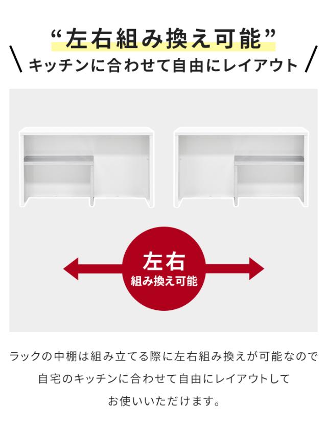 | 対面キッチン等の手元隠しにもなるカウンター上収納。 上部天板も収納スペースとして利用でき、お好みのアイテムをおしゃれに飾ることができます。 両方無駄なく収納できる中棚は、左右組み換えOK。 本体はマグネットを使用できるため、メモなどの貼り付け可能。 |