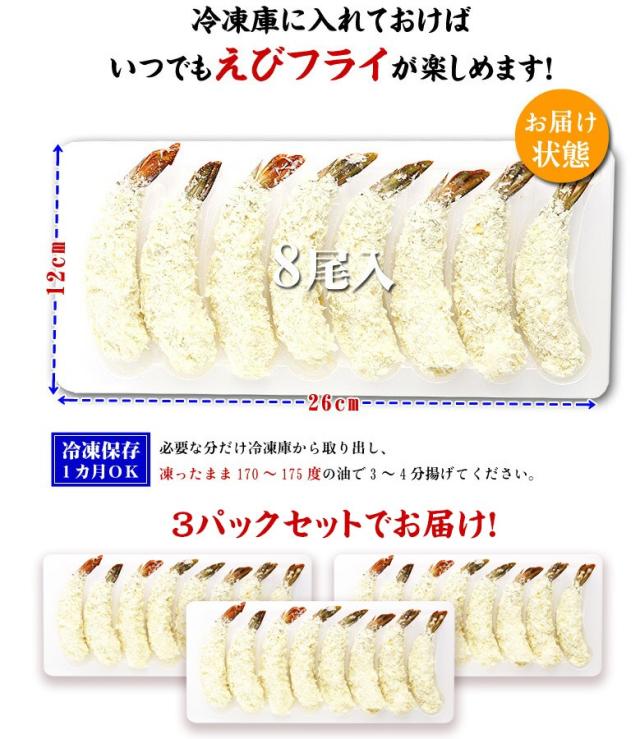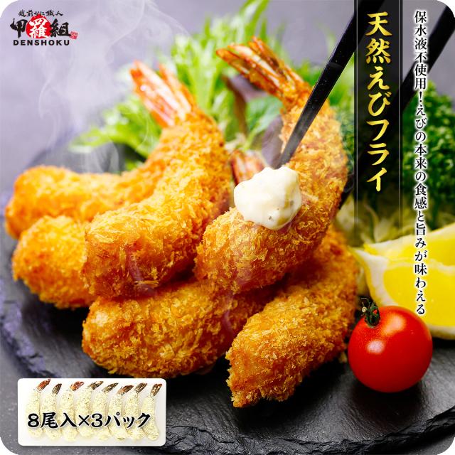 年内お届け間に合う! 希少な高級天然エビ使用! 無保水 天然えびフライ (8尾入×3パック) 時短 弁当 揚げ物 惣菜 エビフライ 海老フライ