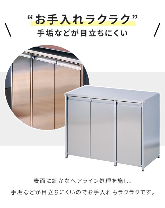 表面に細かなヘアライン処理を施し、手垢などが目立ちにくく、また分別もできて機能的。
