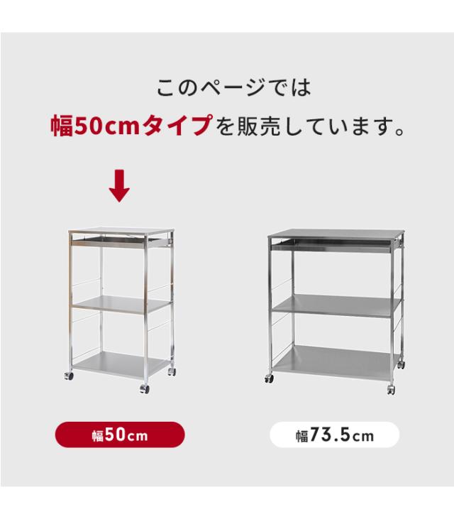 【値下げ】ステンレス製 ワゴン 作業台 幅50cm 3段 キャスター付き 引き出し付き キッチンワゴン 調理台 サイドワゴン シンプル 便利