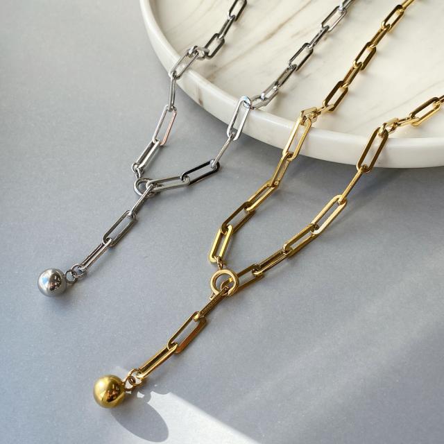 送料無料 Y字レオンチェーンステンレスネックレス 金属アレルギー サージカルステンレス SUS316L オーバルチェーン メタルボール レディース