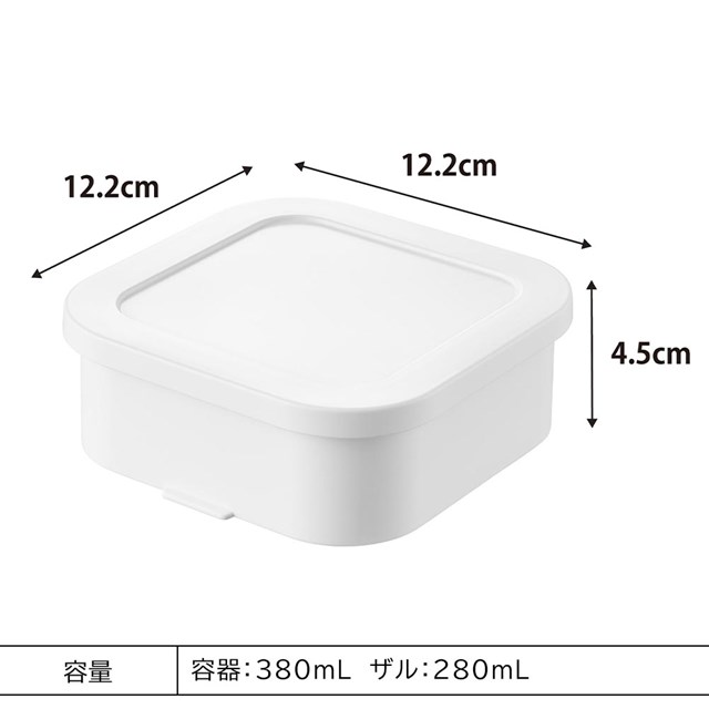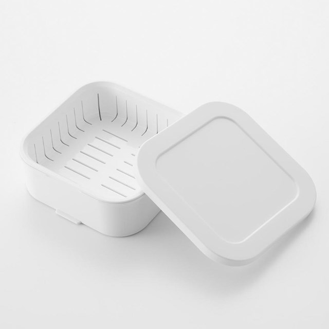 蓋をしたまま電子レンジで加熱でき、容器・ザル・蓋は凹凸が少なく洗いやすい設計で食器洗い乾燥機にも対応しています。
