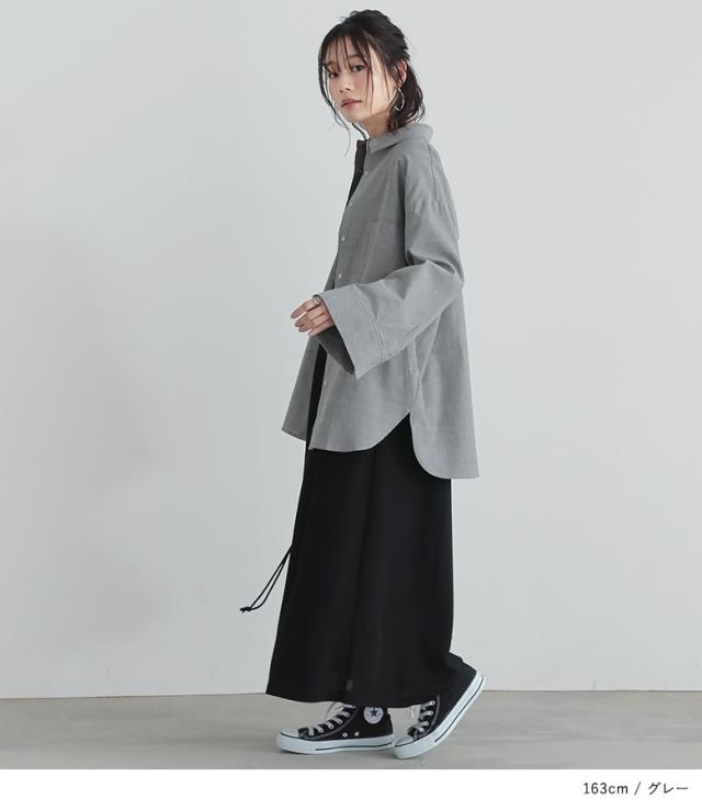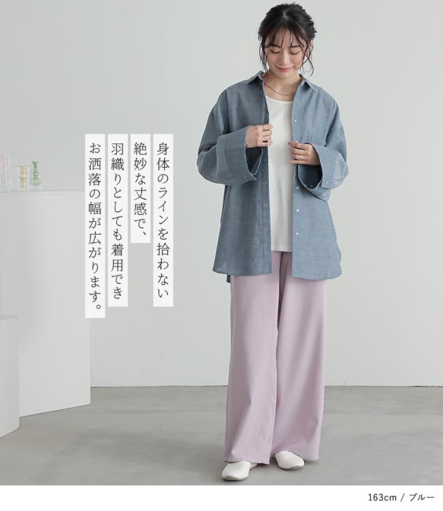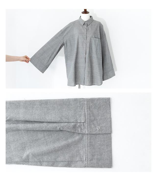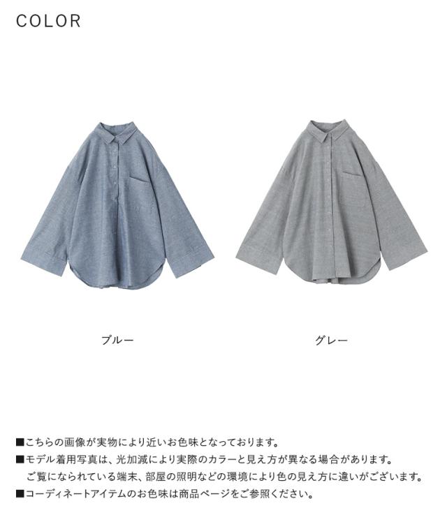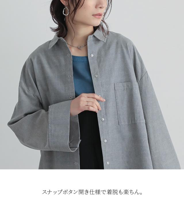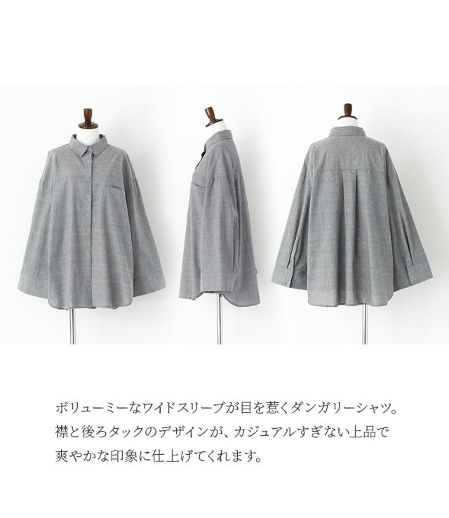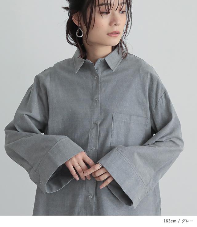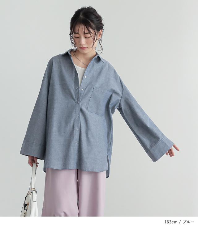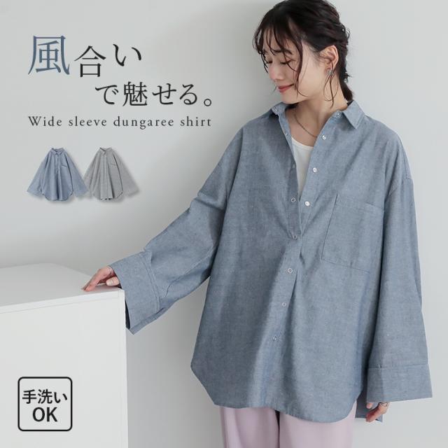 『ワイドスリーブダンガリーシャツ』※メール便可※【10】[シャツ レディース トップス 長袖 ダンガリーシャツ ワイドスリーブ スナップボタン ブラウス チュニック レイヤード 重ね着 羽織 綿混]