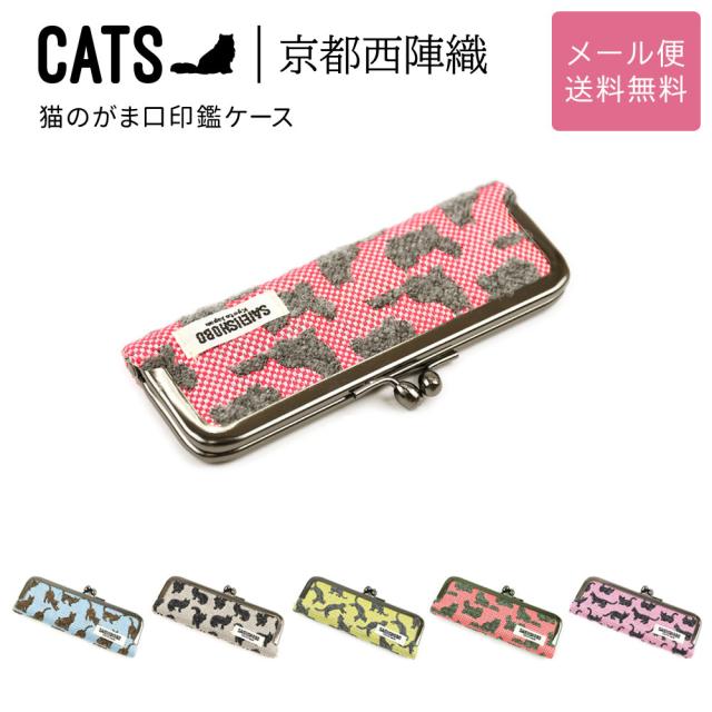 猫のがま口印鑑ケース 13.5mm ハンコ入れ CATS 西陣織 日本製 猫柄 生地 撥水加工 ジャガード レディース SAIEIISHOBO 西栄メール便送料無料 がま口 判子ケース 印鑑入れ 10.5mm 12mm 猫グッズ 猫好き ピンク/レッド/イエロー/ブルー/グレー 25054019