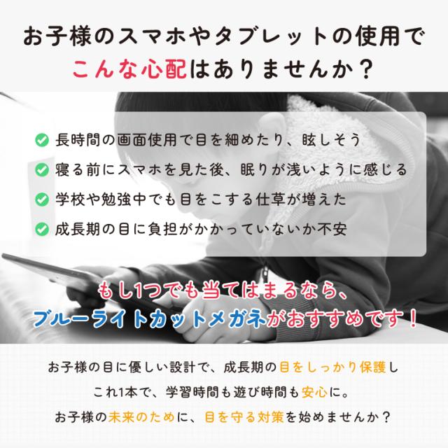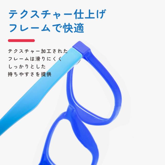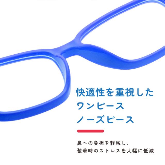 成長期の繊細な目に配慮した設計で、長時間でも快適に着用できるブルーライトカットメガネです。