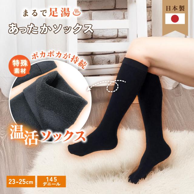 まるで足湯 ソックス 靴下 ハイソックス あったか 145デニール プレーン 薄手 ゆったり 日本製 奈良県産 防寒 冷え性 あたたか 冷え 予防 温め 温活 秋 冬 暖かい フットケア ぽかぽか ブラック 無地 デスクワーク 保温 程よいフィット感 【メール便送料無料】