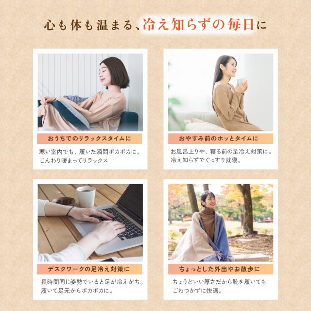 履いた瞬間から感じる、まるで足湯に浸かっているような心地よさ。