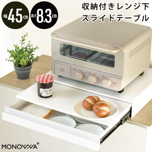 レンジ下 引き出し&スライドテーブル レンジ下収納 スライドトレー 幅45×高35×奥8.3cm キッチン家電下 収納 レンジ台 引き出し キッチン収納 電子 コンパクト 一人暮らし キッチン 台所 カウンター 家電 耐熱 作業スペース