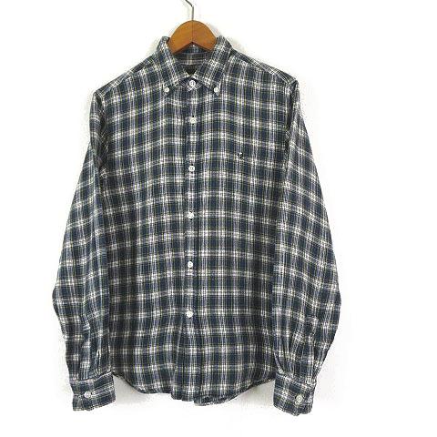 【中古】デプト DEP'T シャツ ボタンダウン チェック スカル 刺繍 長袖 XS 緑 白 黄 小さいサイズ メンズ