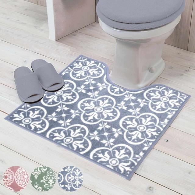 トイレマット カラーショップ 55×60cm ( トイレ マット 足元マット すべり止め 洗濯可 トイレタリー 滑り止め 丸洗い 55×60 レース アラベスク タイル )