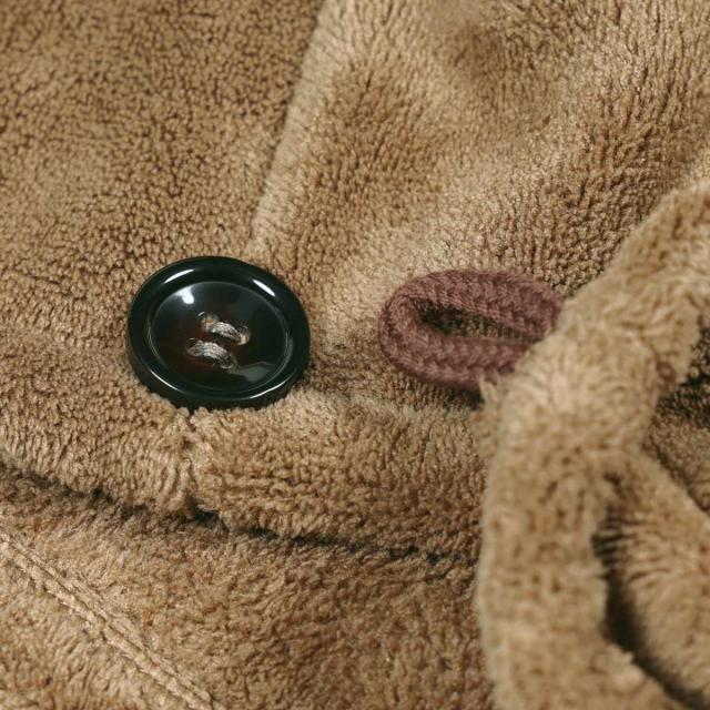 ヘアターバンの端をねじりながら端先のループをボタンに掛けるだけなので、簡単にお使いいただけます。ボタンは2段階で、調整しやすいです。