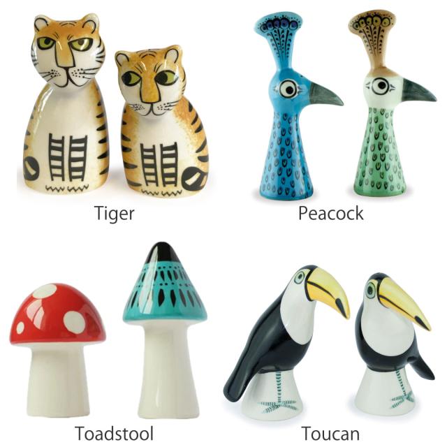《 LH12256 ハンドメイド 手作り モチーフ ディスプレイ オシャレ お洒落 可愛い カワイイ おすすめ 人気 オススメ プレゼント 贈り物 ギフト お祝い お返し 祝い 結婚 誕生日 ブランド イギリス 大人女子 動物 箱入り 卓上 玄関 デスク 飾る オブジェ アニマル グッズ タイガー トラ 虎 ピーコック クジャク 孔雀 キノコ オオハシ ソルト ペッパー 胡椒 コショウ スパイスケース スパイス入れ 調味料ボトル 調味料 保存 保存容器 2点セット 》