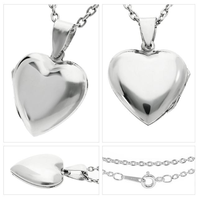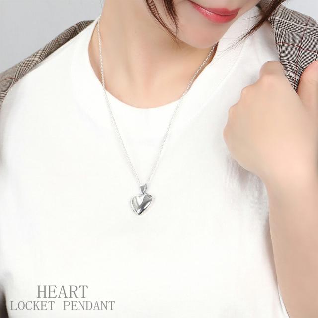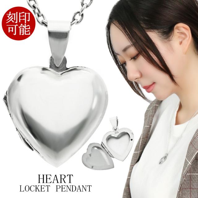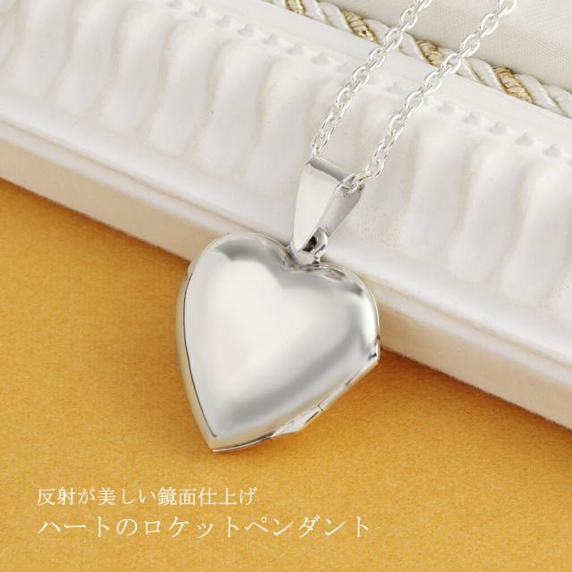 鏡面 ハート ロケットペンダント 写真 刻印可 ネックレス ペンダント ペンダントトップ シルバー 刻印 ロケット 写真入れ 両面 シンプル レディース