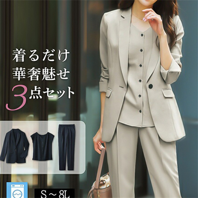 パンツスーツ セットアップ レディース 3点セット卒業式 ママスーツ OL 細身シルエット 制服OL ビジネス 入学式 卒業式 通勤 送料無料