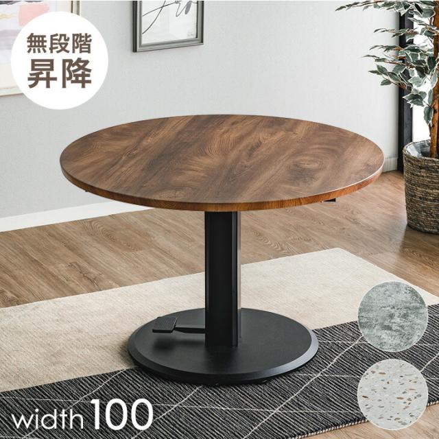 【10時〜P5%還元】 昇降 円形 ダイニングテーブル 100cm 無段階 高さ調節 昇降式 センターテーブル テーブル 一本脚 ペダル ガス圧式 デスク 木目 石目 モルタル グレー テラゾー 円卓 昇降テーブル 丸型 丸 円形テーブル ソファテーブル 円 100]