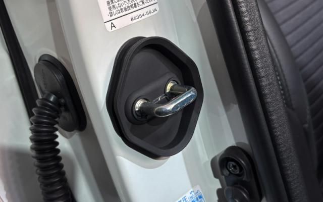 素材はゴム製で、ドアを閉める際の摩擦を軽減し、ドアロック部分を損傷から守ります。また、ドアを閉める音を和らげる効果もあります。